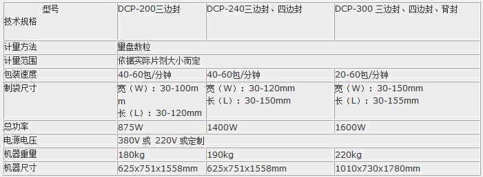 采用液晶面板微电脑控制,制袋系统采用步进电机细分技术,自动跟踪、定位包装袋的色标,按键设定制袋长度,自动打印批号或生产日期,包装成品上切易撕口。振动计数装置先进新颖,多向式振动,振幅可根据物料规格和填充精度无级调整,实现高精度计数,数粒盘六工位,轻松完成制袋的操作、调整,采用自学习技术的新光电控制系统,在一个包装袋内自动定位,对准光标,减少人工调节,(制袋精度高,误差小于1mm);提高包装材料使用率;具有测速功能,数码显示包装速度。具有设定数量包装后自动停机功能。具有跟色错误自动停机功能。